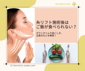 糸リフト施術後は、とにかく「口を大きく開けないこと」を徹底してください。糸がしっかり固定される前に表情筋を大きく動かすと糸がズレる・切れるなどの不具合が起きてしまいます。
