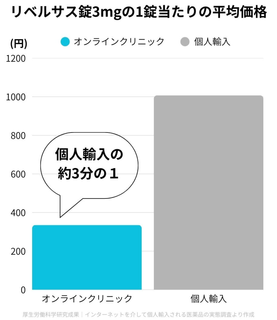 日本国内で調査した結果、オンラインクリニックでリベルサスを買うと個人輸入サイトの3分の1くらいの価格になることが分かっています。